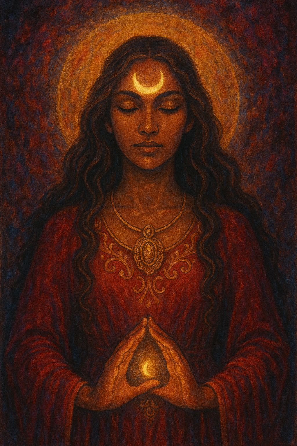 her face a map of weathered faith.